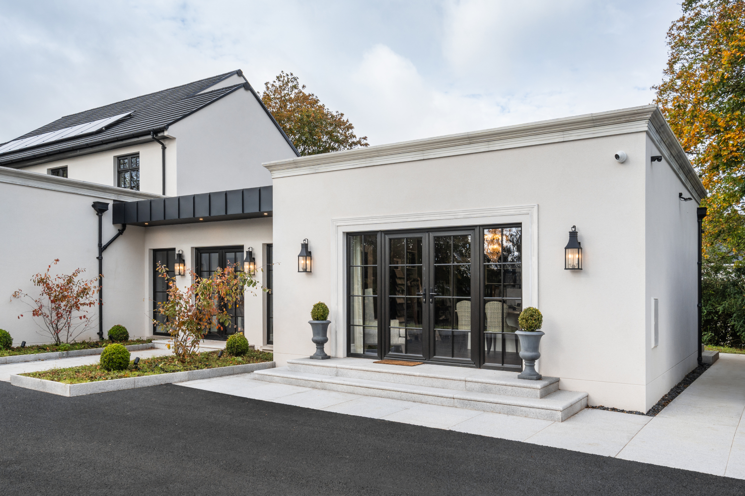 A complete renovation and extension transformed this dated 1960s detached house into a bright, elegant family home tailored to both living and working. The project combined full refurbishment with new front and rear extensions, alongside the conversion of the existing garage into a bespoke interior design studio for the client’s business.