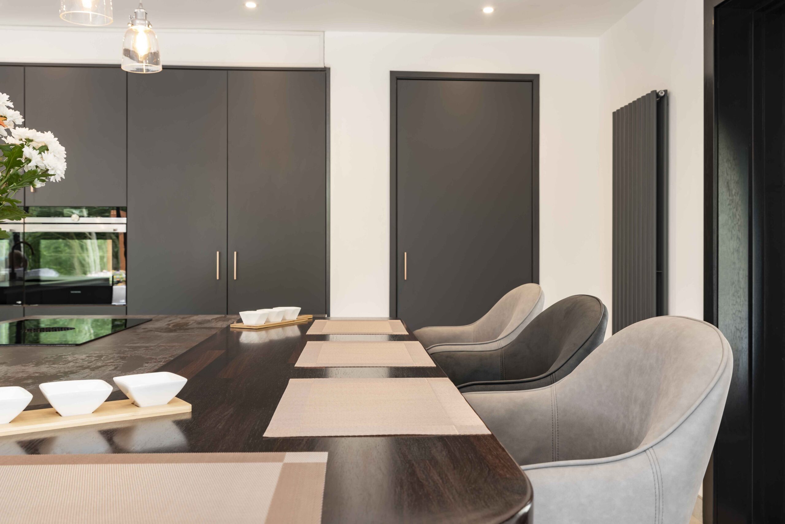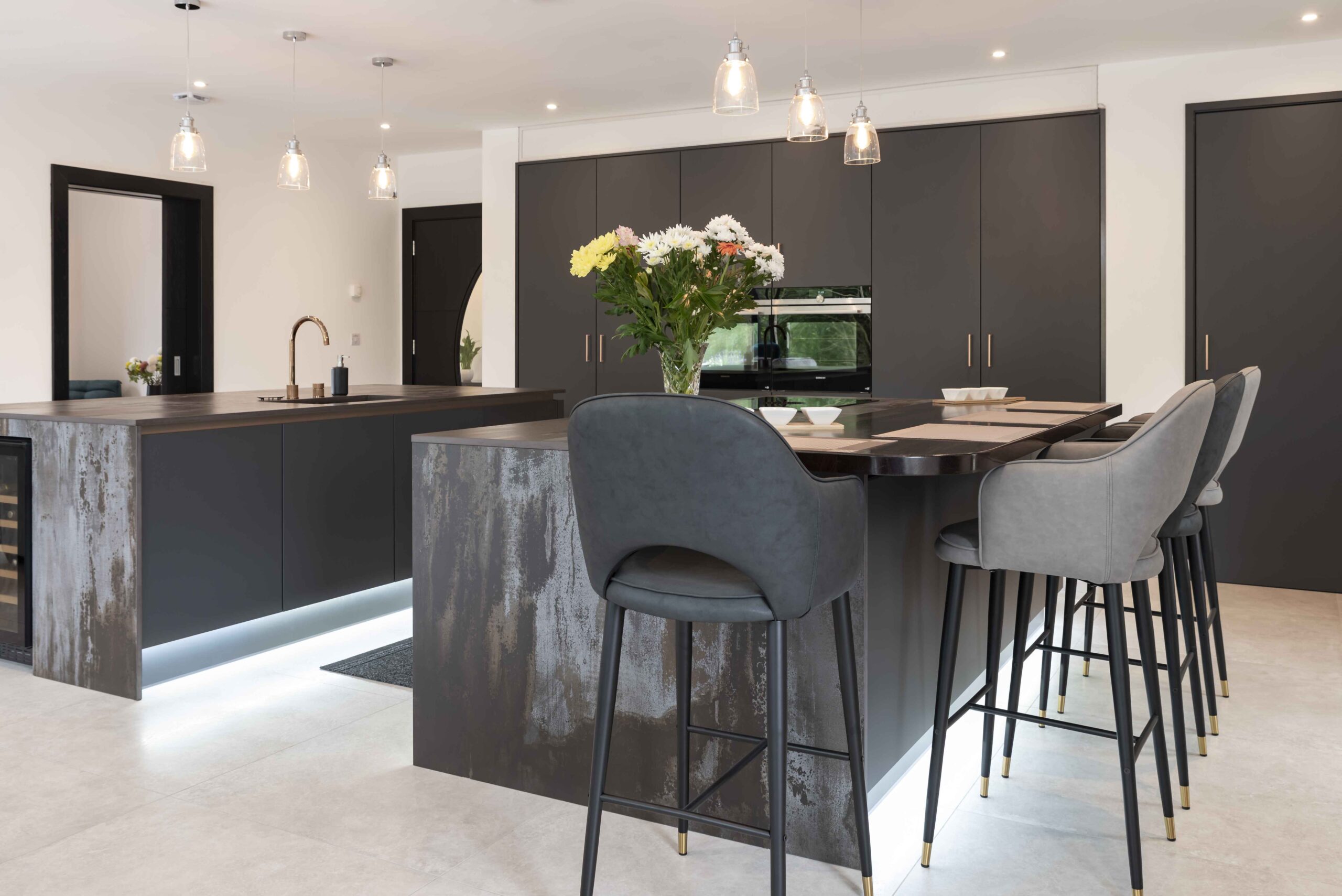 The central hub of the home was transformed, with the relocation of the kitchen and living spaces to the southern end of the dwelling. Internal walls were removed to make the space one open plan expanse, while an impressive 8m glazed opening was created in the southern wall, providing panoramic views across the rolling fields and creating the wow factor the client craved. This design decision allowed natural light to cascade deep into the floorplan, creating light filled enjoyable living spaces.